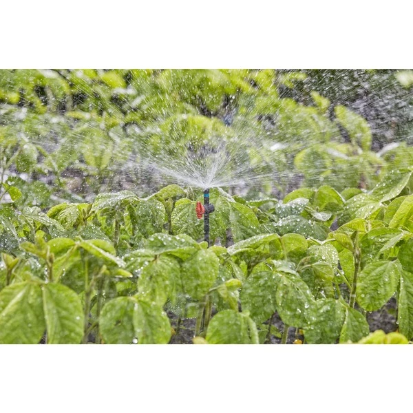 La buse de pulvérisation GARDENA à 360° des micro-gouttes GARDENA assure une irrigation circulaire à l’échelle de la zone des plates-bandes de fleurs ou de légumes. De la buse de pulvérisation provient un brouillard de pulvérisation fin d’une portée de 3 mètres, qui peut irriguer une surface totale de 28 m². L’installation sur le tuyau de 13 mm est simple et fonctionne soit à l’aide de l’outil d’assemblage directement dans le tuyau, soit en utilisant la pièce en T pour les buses de pulvérisation. En quelques étapes simples, la buse de pulvérisation est mieux placée au milieu du lit et immédiatement prête à l’emploi. Avec le tube d’extension disponible séparément pour les buses de pulvérisation (article n ° 13326-20), vous pouvez augmenter la position de la buse Micro-Drip-System. De cette façon, même les plantes les plus hautes peuvent être irriguées par le haut. Combiné avec la vanne d’arrêt (article n° 13207-20), il est possible de réguler à l’infini le débit d’eau ou de fermer des brins individuels du tuyau d’installation. Cela garantit une irrigation optimale et économe en eau. Grâce à la conception intuitive, le motif de pulvérisation est reconnaissable sur la tête de pulvérisation, ce qui permet de distinguer clairement toutes les buses de pulvérisation GARDENA les unes des autres. Le produit de qualité est fabriqué en Allemagne.