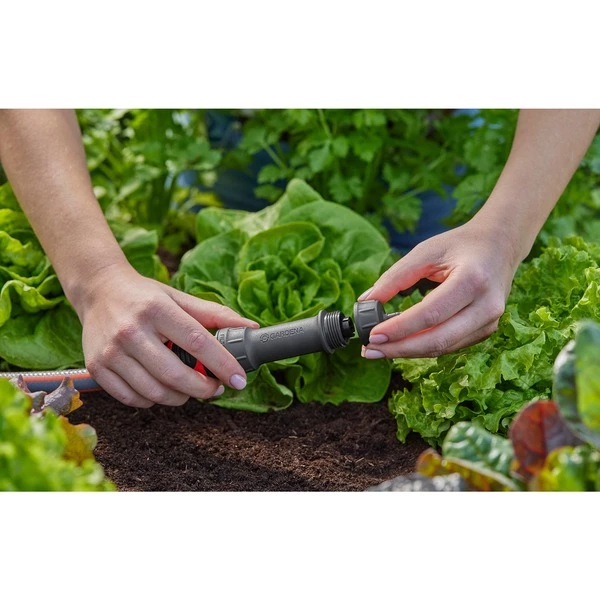 En tant que module de départ pour le micro-système goutte à goutte GARDENA, le dispositif de base GARDENA 1000 est essentiel pour le système de goutte à goutte populaire de GARDENA. Il réduit la pression d’entrée de l’alimentation en eau raccordée à la pression de service d’environ 1,5 bar et assure ainsi le fonctionnement optimal des goutteurs et des buses connectés. Grâce au filtre intégré, l’eau est filtrée de manière optimale, le débit d’eau pouvant atteindre environ 1 000 litres par heure. Pour le nettoyage à l’eau courante, le filtre est amovible. L’unité de base GARDENA 1000 est livrée prête à être connectée avec une pièce de raccordement et un adaptateur et est connectée aux tuyaux particulièrement rapidement et facilement grâce à la technologie de connexion brevetée « Quick & Easy ». Grâce à la pièce de connexion et à un adaptateur, la connexion pour le tuyau de distribution de 4,6 mm (3/16 ») et également pour le tuyau d’installation de 13 mm (1/2 ») est possible. À la fin de la saison de jardinage ou lorsqu’il y a un risque de gel, l’unité de base 1000 peut être démontée du système en quelques étapes simples afin de la stocker à l’abri du gel.