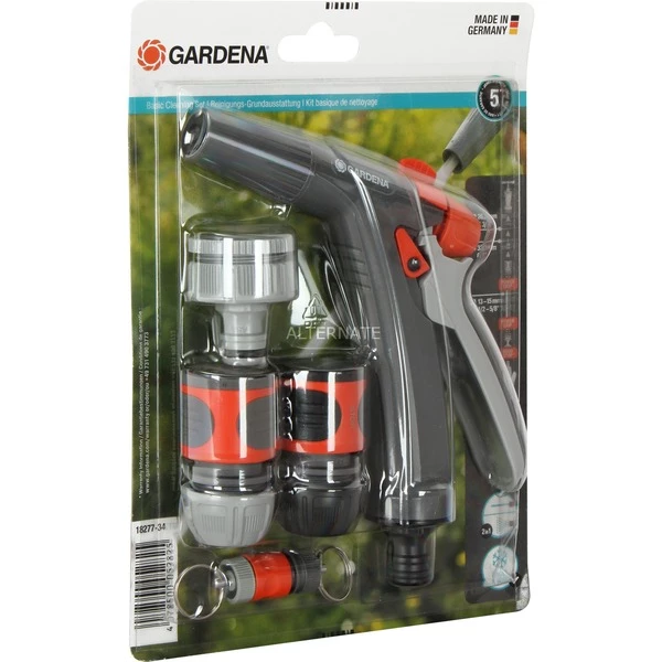 L’équipement de nettoyage de base GARDENA 18277-34 comprend un connecteur de robinet avec adaptateur, un connecteur de tuyau et un arrêt d’eau, adapté aux tuyaux de 13 mm (1/2 po) et 15 mm (5/8 po), ainsi que la seringue de nettoyage par impulsion. L’arrêt d’eau à l’extrémité du tuyau permet un changement facile de la seringue ou de la douche sans avoir à courir au robinet. Cet ensemble comprend toutes les pièces du système GARDENA d’origine et une seringue de nettoyage pour une utilisation immédiate du tuyau. La seringue de nettoyage impulsionnel avec un contrôle infiniment variable du jet de perçage au brouillard de pulvérisation ainsi que le déclencheur d’impulsion avec verrouillage permanent est idéal pour nettoyer les salissures intensives ou pour la pulvérisation fine des plantes.