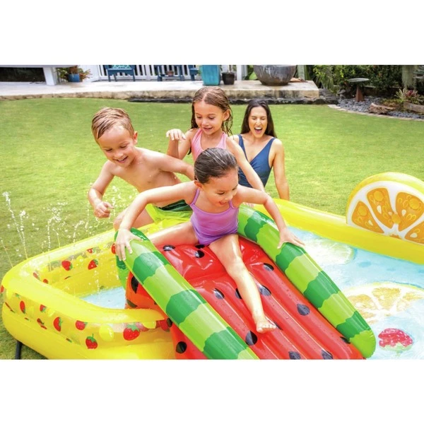 Intex Pataugeoire Fun ‘n Fruity Play Center, 244x191cm, Piscine (Jaune, Jaune, Avec Toboggan Aquatique)